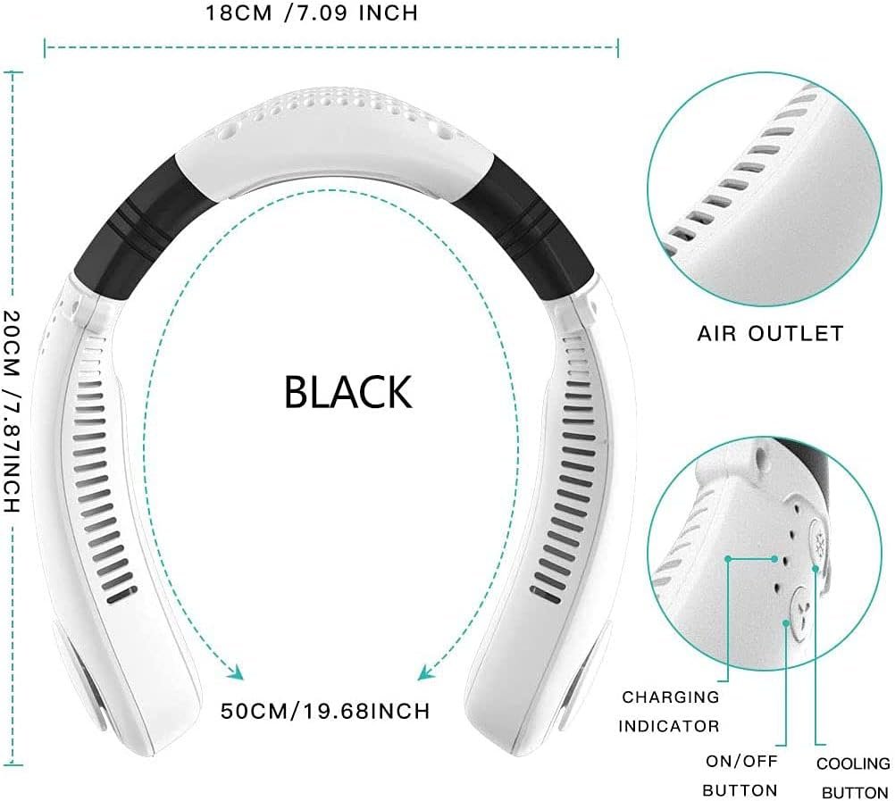 È anche perfetto come compagno per lavorare nella stagione calda. (HANDS FREE BLADELESS FAN) Rilassati in qualsiasi momento, ovunque, lo stile elegante ti dà un aspetto fresco. un’ottima scelta per te. Il ventilatore portatile è molto adatto per il raffreddamento personale, gli uffici, le chiese, le attività all’aperto, come golf, escursionismo, pesca, metropolitana, escursioni in bicicletta, festival, pendolari, scuola, viaggi, arrampicata e guardare giochi sportivi, ecc.