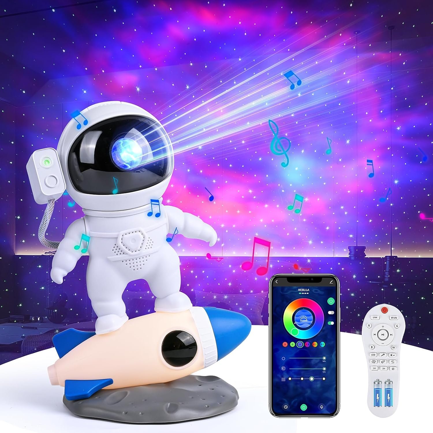【 Regalo meraviglioso e decorazioni per la casa 】 Questa luce notturna del proiettore del cielo stellato dell’astronauta a razzo unico ha un aspetto decente ed effetti incredibili, vari effetti di luce di nebbia portano diverse sorprese, contribuendo a stimolare la curiosità, l’immaginazione e la creatività dei bambini. È perfetto per casa, stanza, festa da ballo, matrimonio, compleanno, DJ bar, Natale, spettacolo e club.