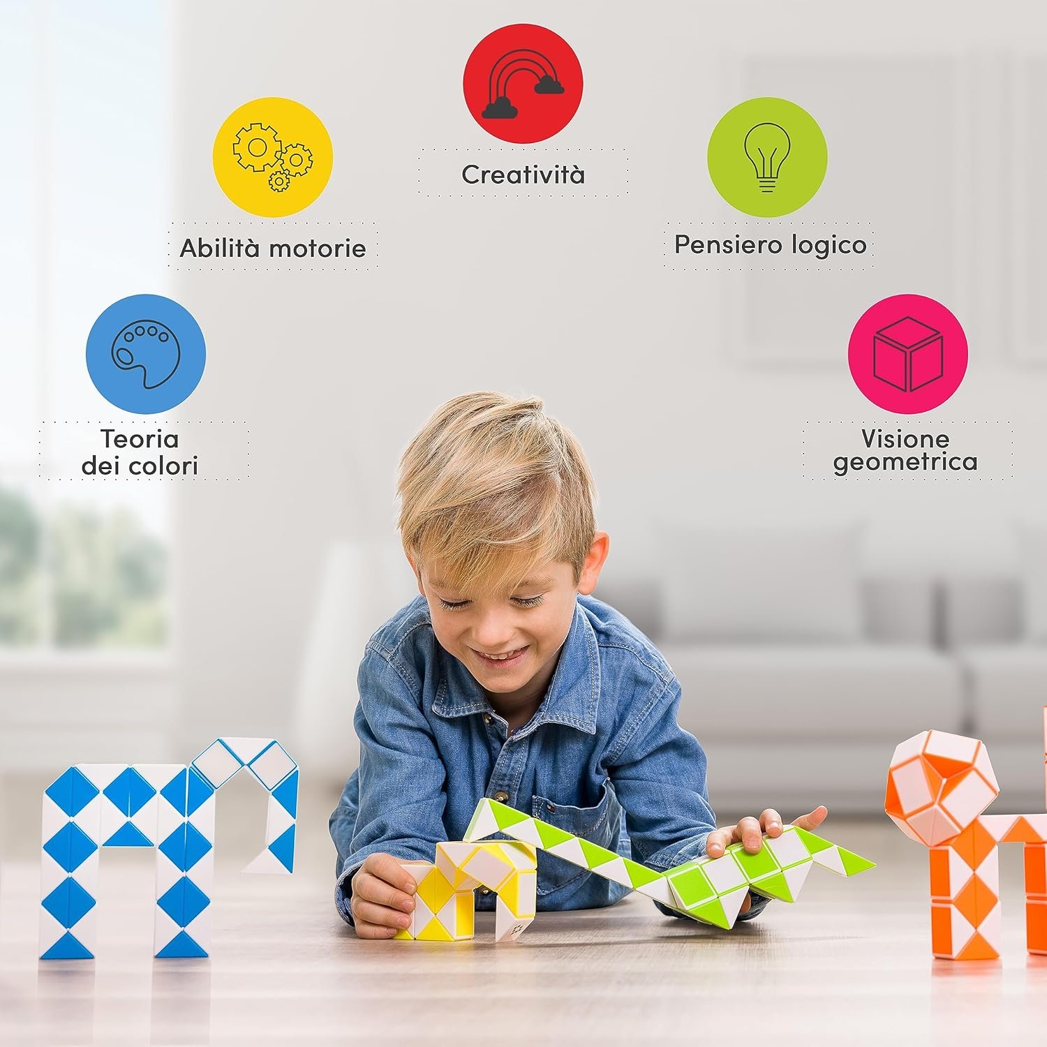 🐍 Giochi Creativi: Libera la creatività! Il puzzle del serpente giocattolo può trasformarsi in svariate forme: serpente giocattolo, cane, elefante, fenicottero, cuore e molti altri.