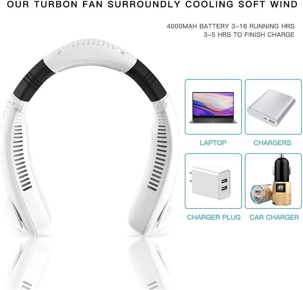 È anche perfetto come compagno per lavorare nella stagione calda. (HANDS FREE BLADELESS FAN) Rilassati in qualsiasi momento, ovunque, lo stile elegante ti dà un aspetto fresco. un’ottima scelta per te. Il ventilatore portatile è molto adatto per il raffreddamento personale, gli uffici, le chiese, le attività all’aperto, come golf, escursionismo, pesca, metropolitana, escursioni in bicicletta, festival, pendolari, scuola, viaggi, arrampicata e guardare giochi sportivi, ecc.