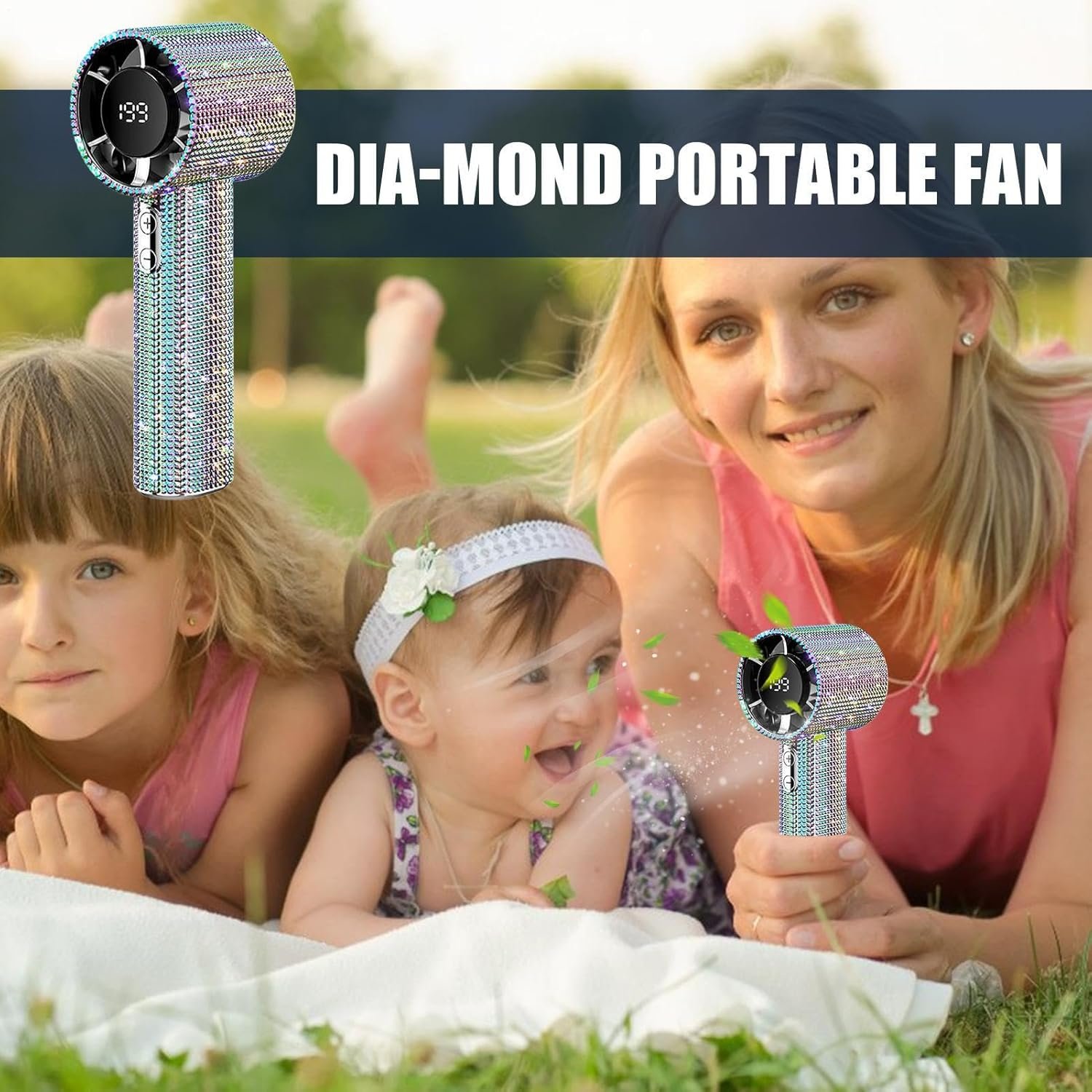 Générique Ventilatore portatile da viaggio – Mini ventilatore con strass personale rinfrescante | gadget con display a LED per uomini, donne, estate, viaggi, all’aperto, spiaggia, campeggio
