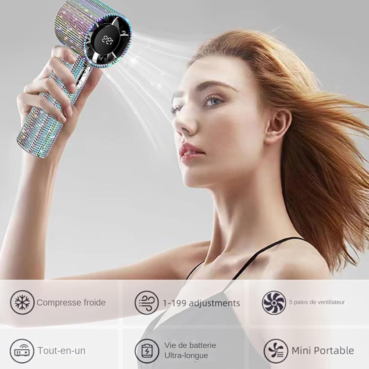 Presa ergonomica: manico compatto dal design confortevole che integra dettagli cristallini scintillanti e luce dinamica fluida, funzionalità ed estetica di accessorio alla moda.