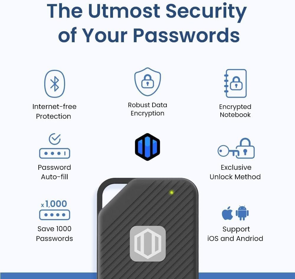 Gestione password offline, Gestire le password – Chiavetta Bluetooth, Crittografia di livello militare, Funzionalità di compilazione automatica, 1000 credenziali