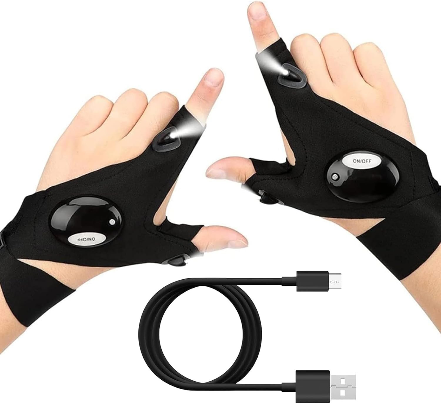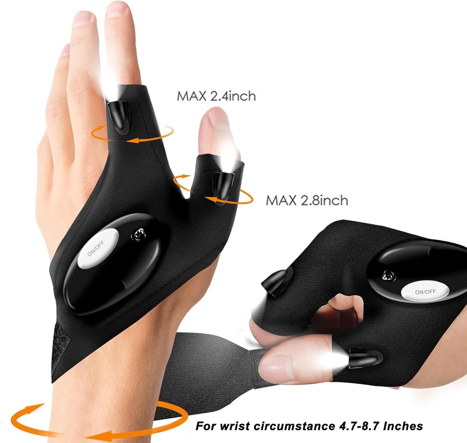 【Facile da usare con la mano】 Guanti con torcia elettrica con design senza dita. Lascia che le mani abbiano la sensazione più reale per un funzionamento più preciso. Allo stesso tempo, le luci a LED dell’indice e del pollice del guanto facilitano la messa a fuoco dove ne hai bisogno, ottenendo l’effetto di mani libere e un’illuminazione precisa.