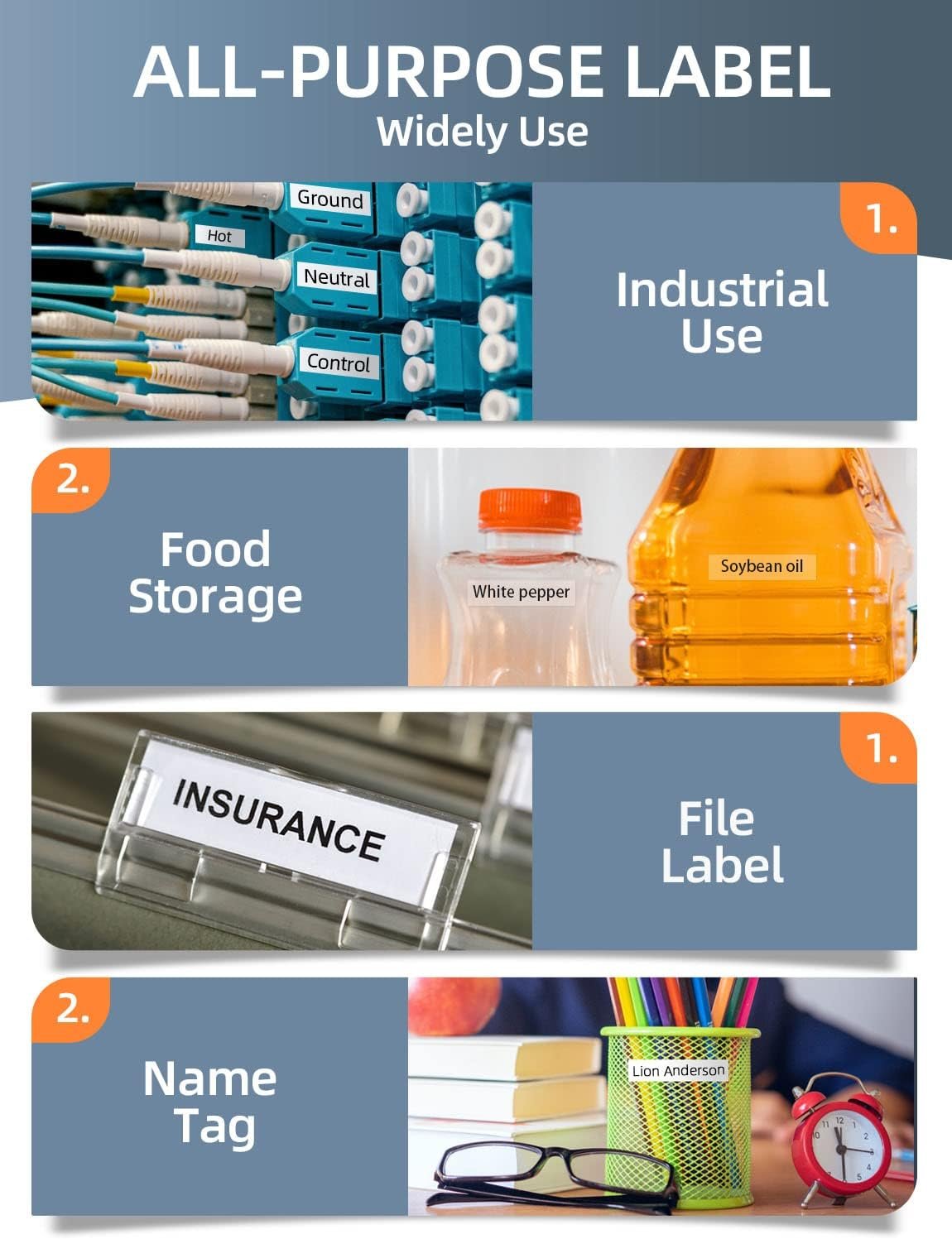 Materiale affidabile: gli adesivi sono abbastanza resistenti da resistere a graffi e abrasioni; restringono liquidi di qualsiasi tipo: dall’acqua all’olio; si attaccano praticamente a qualsiasi superficie per cartelline, etichette alimentari per buffet, etichette per bambini, etichette per cavi, etichette per nome, senza lasciare residui