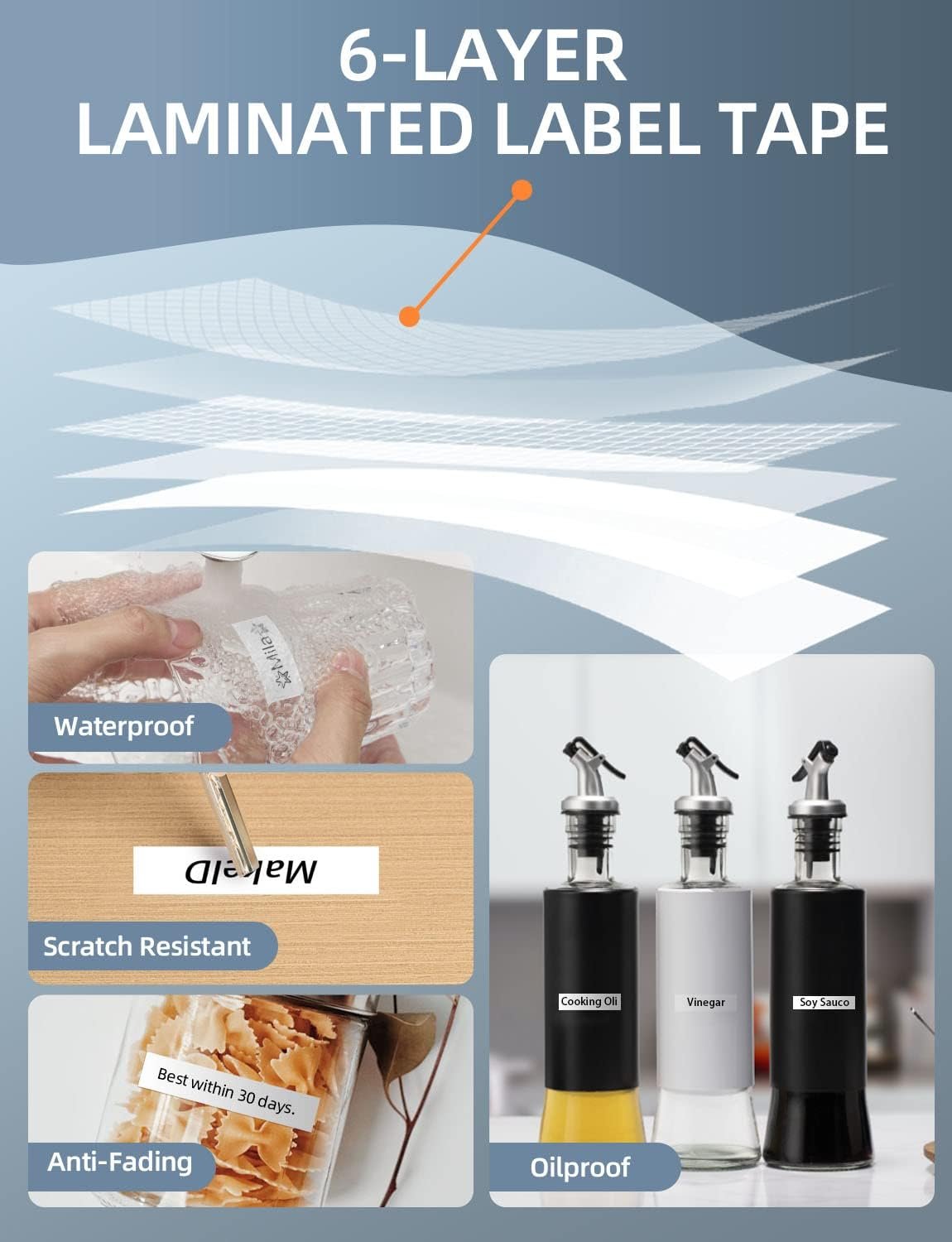MATERIALE AFFIDABILE: gli adesivi personalizzati sono abbastanza resistenti da resistere a graffi e abrasioni; resistono a tutti i tipi di fuoriuscite: dall’acqua all’olio; e aderiscono praticamente a qualsiasi superficie per etichette per cartelle, etichette alimentari per buffet, etichette per l’asilo, etichette per cavi, etichette per nome senza residui.