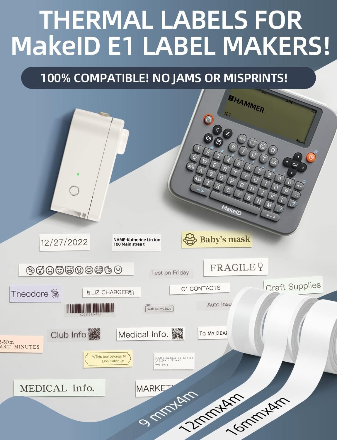 DIMENSIONI COMPATIBILI: compatibile con etichettatrici Makeid L1/E1, misura 16 mm x 4 m; la stampa continua consente di personalizzare le etichette a piacimento e il design migliorato con meno margini ti farà risparmiare tempo e denaro, il che porta ad un uso più economico.