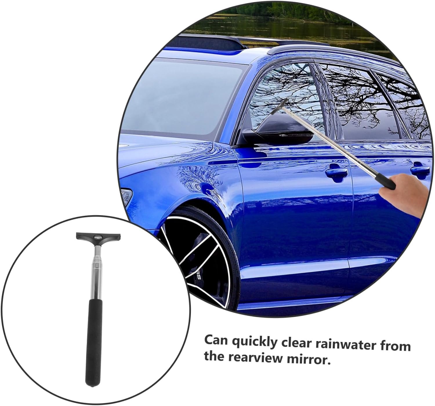 Design telescopico versatile: dotato di funzione telescopica, questo strumento per la pulizia degli specchietti può essere regolato in base alle proprie esigenze, offrendo versatilità per la rimozione dell’appannamento e dell’acqua, raschietto per specchietti, tergivetro per specchietti laterali