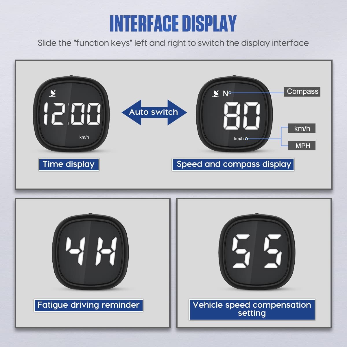 【Funzione Principale】Auto Hud Head-up Display, Indicatore di velocità GPS, promemoria di guida a fatica, avviso di eccesso di velocità, visualizzazione Dell’ora satellitare, visualizzazione della bussola. Passa liberamente tra KMH e MPH. Interfaccia di velocità e interruttore di interfaccia di tempo automaticamente. Umanizzare e nuova esperienza di guida.