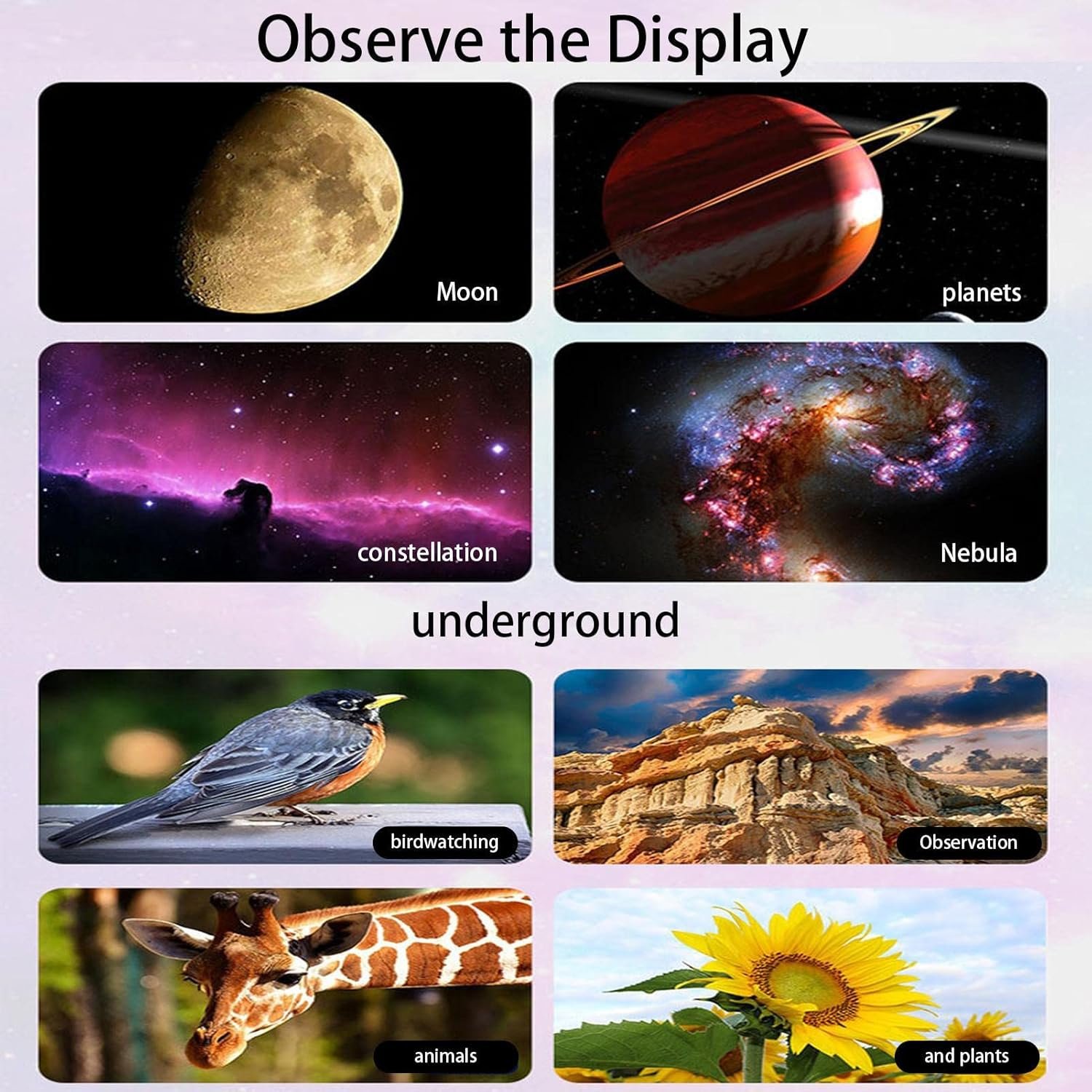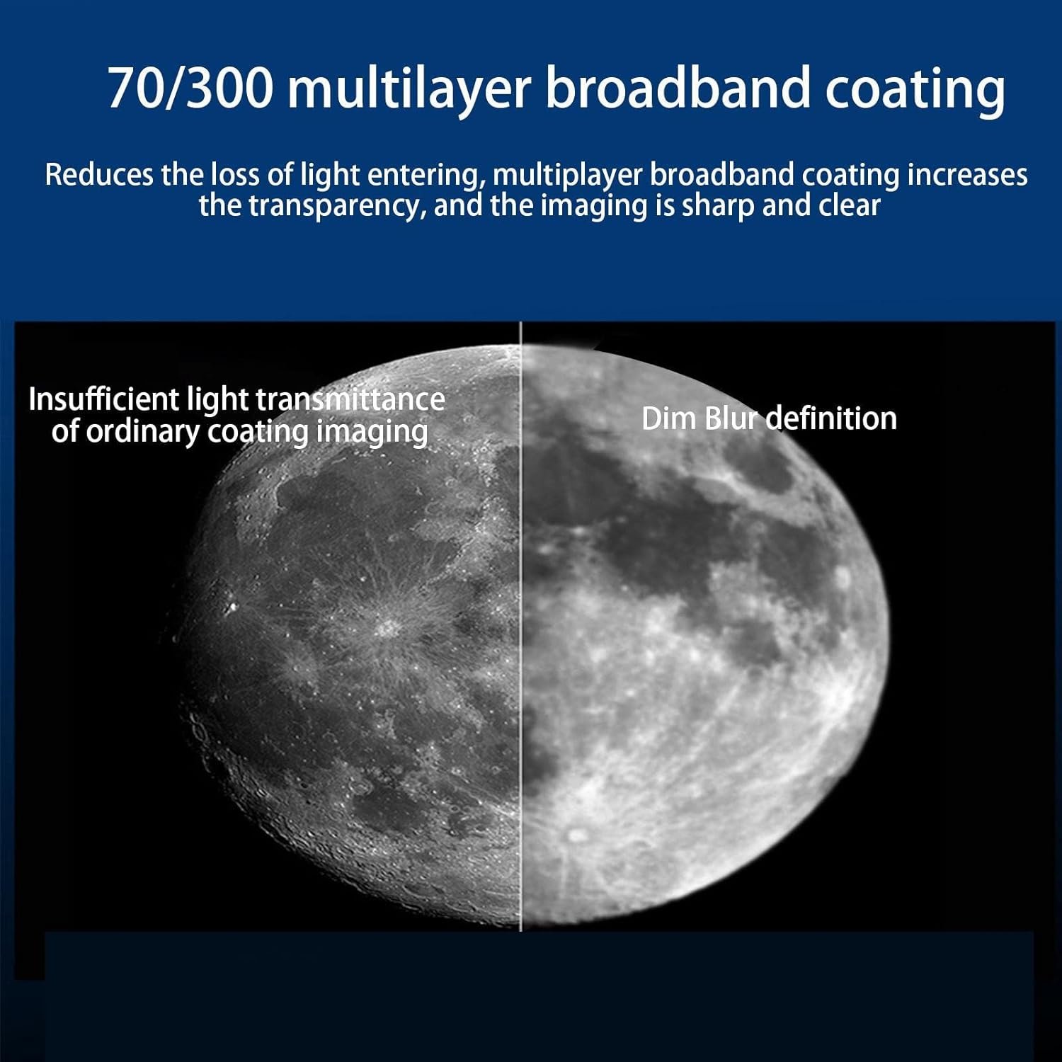 Visualizza le immagini aeree: il telescopio per bambini è il telescopio perfetto per gli astronomi per esplorare le stelle e la luna con lenti in vetro ottico rivestito, rivestimenti ad alta trasmissione e una lunghezza focale di 300 mm.