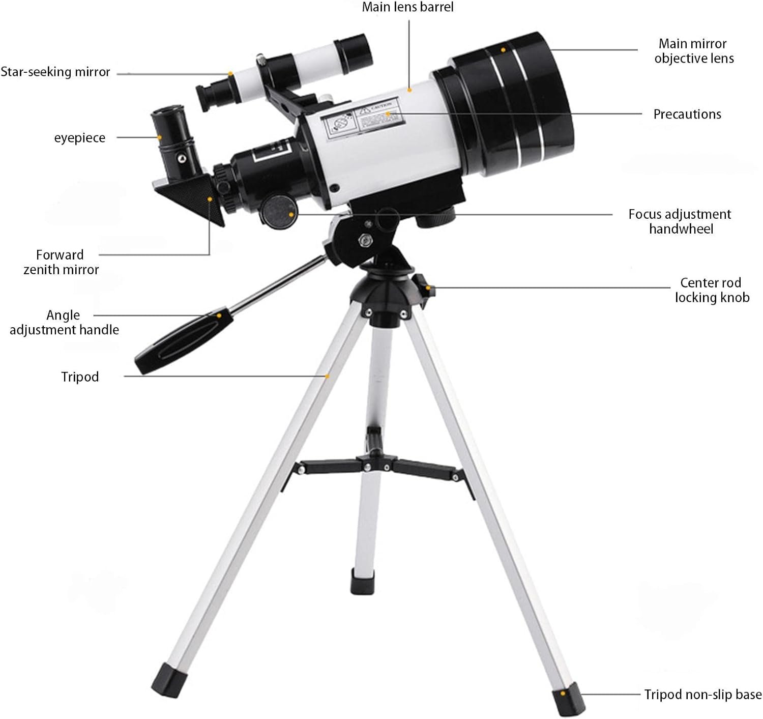 Trippiede estensibile: con un treppiede in alluminio regolabile e una borsa per il trasporto, il telescopio rifrattario può vedere l’aria in diverse posizioni. Può configurare rapidamente i tuoi oggetti e trovare facilmente.