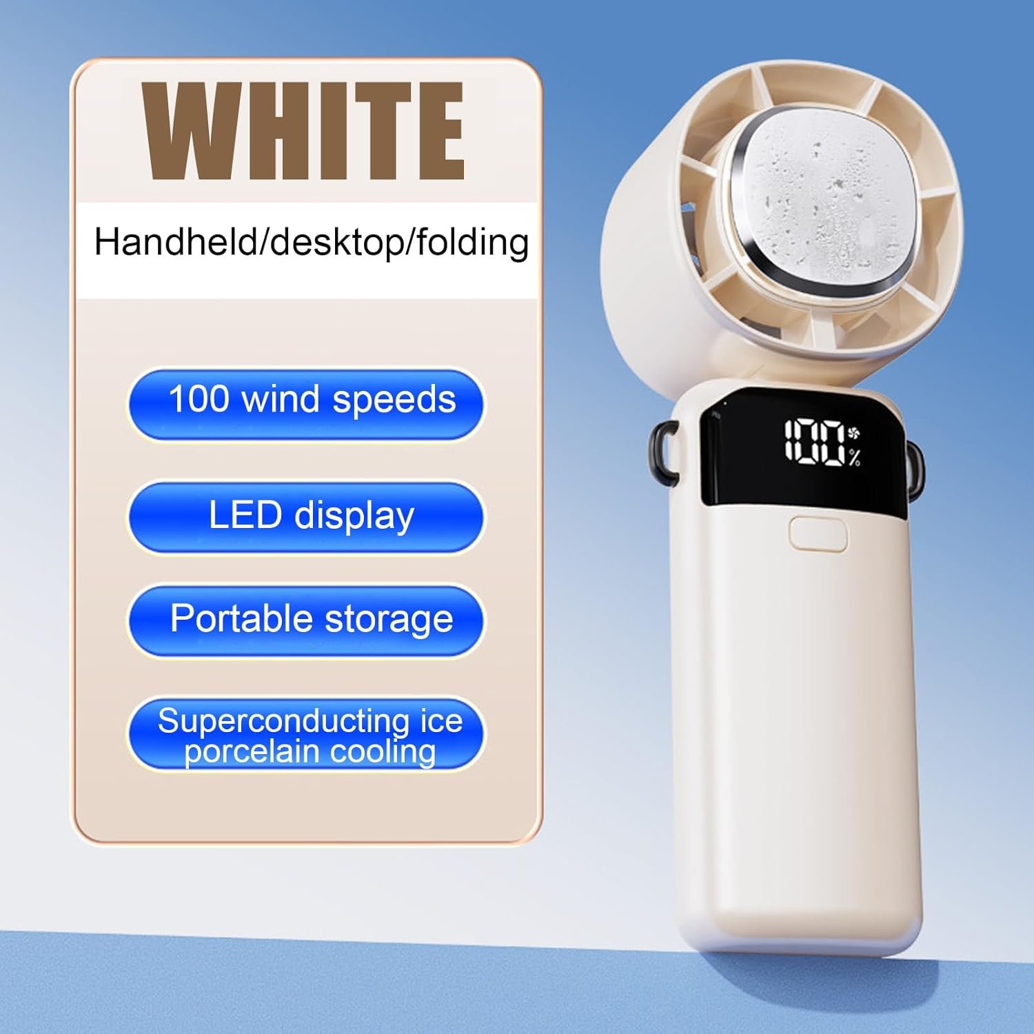 Caratteristiche: lunga durata della batteria, raffreddamento rapido, palmare, piatto sulla scrivania, pieghevole, a basso rumore, con base e corda di sospensione
