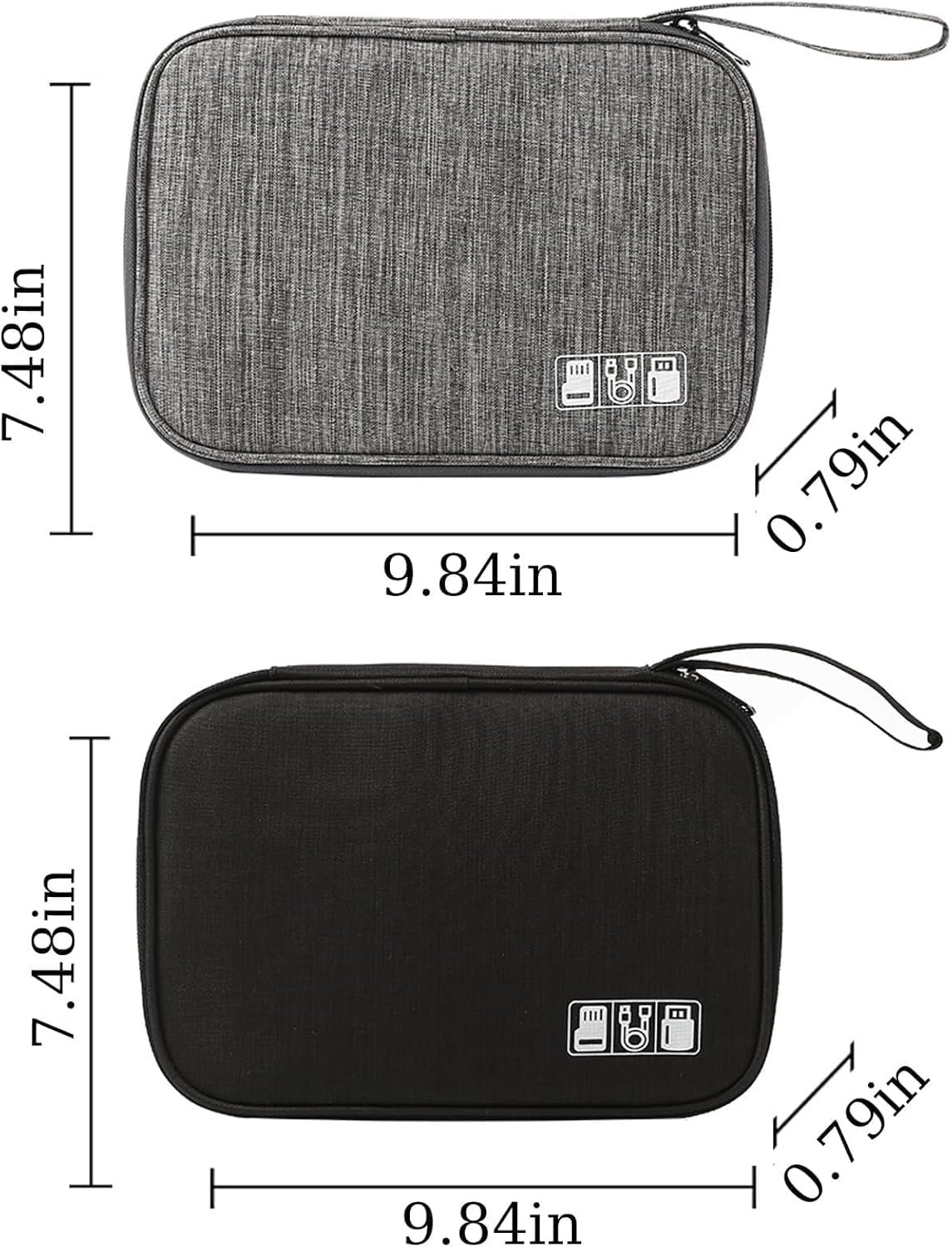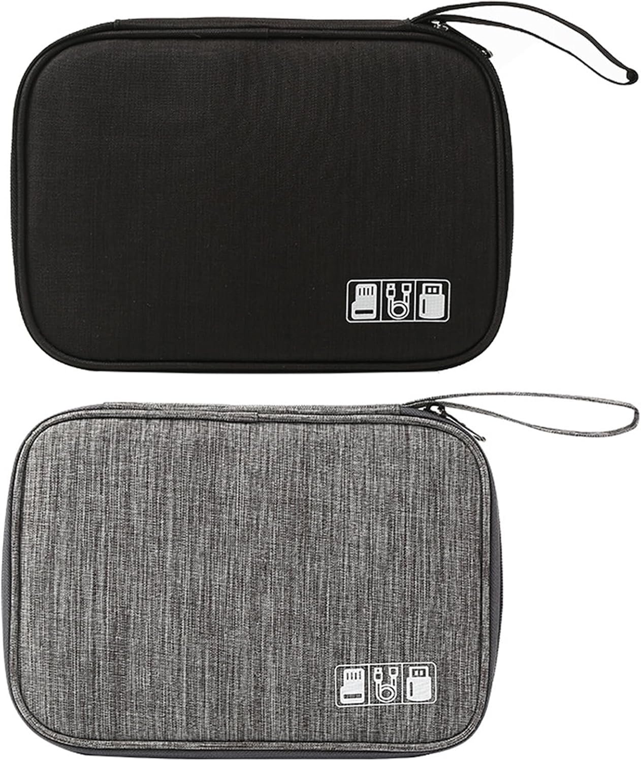 2 borse organizer per cavi da viaggio, accessori elettronici, accessori essenziali per le vacanze, per uomini e donne, borsa universale per gadget da viaggio per unità USB, scheda SD (nero, grigio)